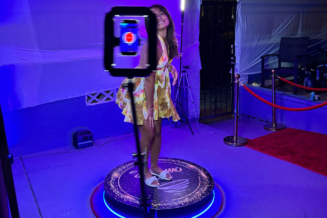 Contact UsAll to run a corporate event, Birthday or Wedding , will be included, people will be able to instantly share hight quality videos, we create custom template accurate with the theme of the event, custom props as well, we arrive an hour before the starting time to setup at the event location, and don’t have any problem if we have to extend like 30 minutes to pickup the equipment at the end of the service contracted. We are ready and set for events without the need of power.